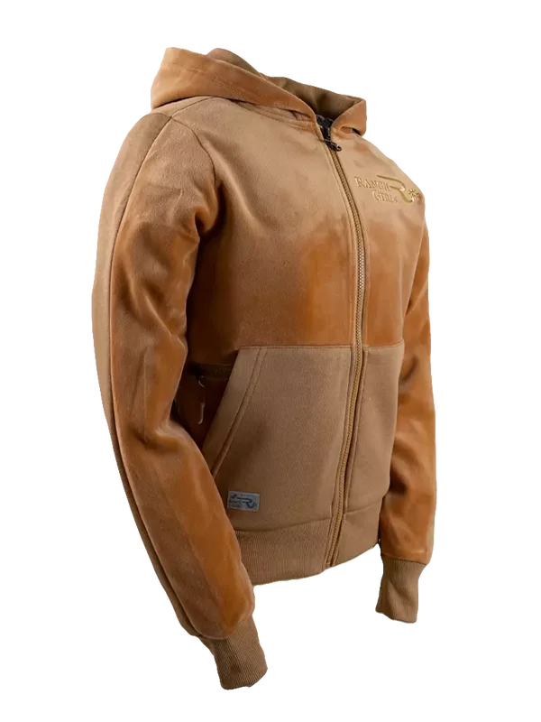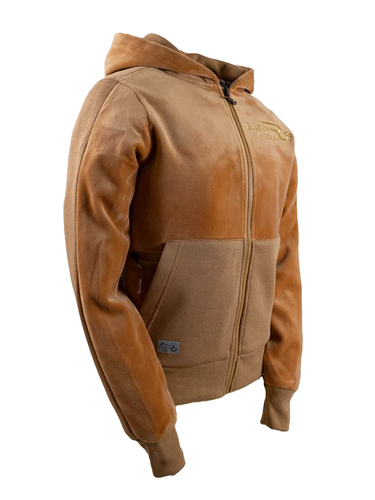 This special material is composed of 100% cotton on one side and laminated with a super soft, velvet-like polyester fabric on the other. Parts of the cut have been reversed to create a shimmery appearance. The fabric is sturdy yet mega soft, while the ribbed cuffs are elastic and have been set off in tone-on-tone colors. Our signature additional zippered pocket, placed half below the kangaroo pocket, offers storage for essentials. The generous slash pockets provide room and warm your hands on cold days. Our brand statement is placed as a shimmering embroidery on the left chest. The hood of the Ranch Girls Style 'JULIE' is made of one layer of fabric, which makes it pleasantly light and won't bother you even if you wear a jacket or a thickly lined winter vest over it. The item combines fashionable style with comfortable wear, making it the ideal companion in the stable or for western riding.