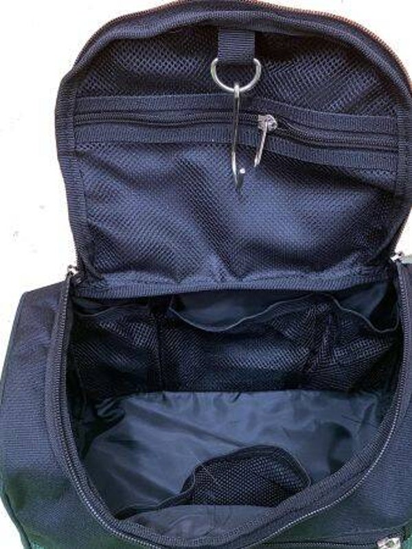 Built-in hook displays the kit from a shower or towel rack to allow for fast access to your items, and tucks away when not in use. Designed for anyone and is an extremely versatile travel bag that can be used as a toiletry bag, makeup or shaving kit, or even to store healthcare items on the go. Lightweight, easy to clean, and perfect for the road trip to your next show or rodeo!