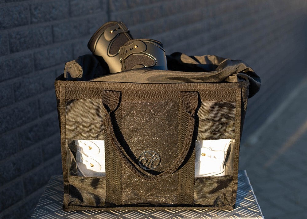 Multifunctionele en luxe tas gemaakt van sterke stof voorzien van glitters. Voorzien van 6 aparte compartimenten voor bijvoorbeeld beenbeschermers,verzorginsartikelen en nog veel meer. De bovenkant is afsluitbaar met een trekkoord.