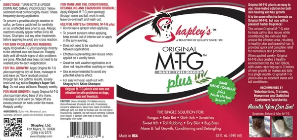 Originele MTG Plus is verkrijgbaar in een fles van 32 oz. Ingredients contain mineral oil, sulphur and Cade oil.