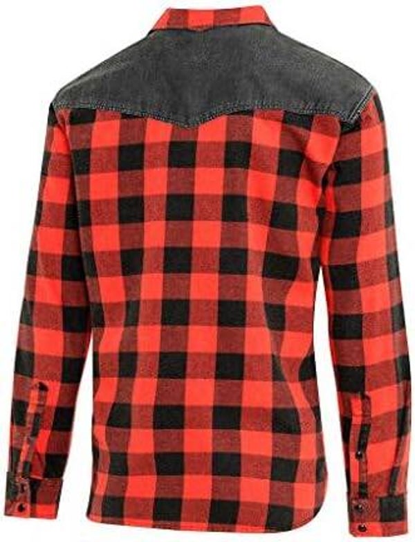 DescriptionWestern shirt stone washed with black denim yoke and maple leaf application, breast pockets and snaps.h