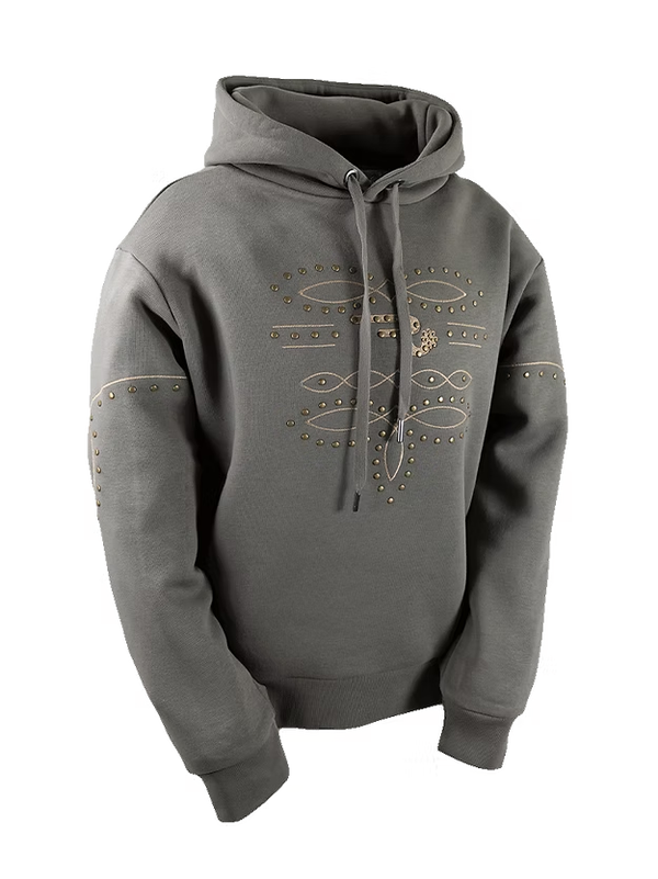 Het Ranch Girls Sweatshirt met capuchon 'WRENLEY' bungee cord is een stijlvol westernitem, verfijnd met matte westernklinknagels en hoogwaardige borduursels in westernstijl. De sportieve, rechte snit zorgt voor een comfortabele pasvorm, terwijl de twee zakken met ritssluiting praktische opbergruimte bieden. Dit sweatshirt met capuchon is de perfecte metgezel voor elke dag: elegant, modieus en ideaal voor dagelijks gebruik. Gemaakt in Griekenland van 70% katoen en 30% polyester, waardoor het bijzonder comfortabel is om te dragen.