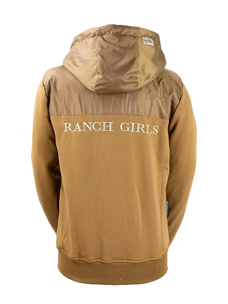 De onverslaanbare Ranch Girls Sweatshirt Pro Shield 'CARRY' in karamelkleur is gearriveerd. De ultieme combinatie van driedraads sweatshirtkwaliteit en nylon. Het nylon materiaal – aan de voorkant van het lichaam, op de capuchon en over de schouderbladen – houdt wind en regen buiten. De warme sweatshirtkwaliteit zorgt voor bewegingsvrijheid en vochtafvoer. Een geweldig item dat je door alle seizoenen heen helpt. Het fijne Ranch Girls logoborduursel markeert een bijzonder merkitem.