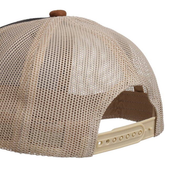 Deze pet heeft een zwart suède voorpaneel en een kaki mesh achterkant voor ademend vermogen, waardoor hij comfortabel en duurzaam is. De bruine suède klep voegt een vleugje rustieke charme toe en vormt een perfecte aanvulling op de bruin-oranje-beige "Wild West Cowboy Rodeo" patch met een cowboyruiter en een stierschedel.