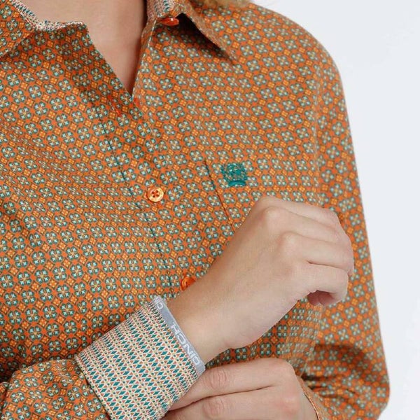 cinch hemd met print oranje (235)