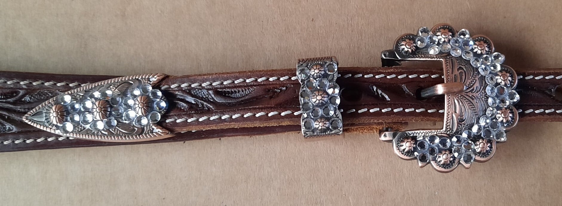 ANTIEKE KOPER gesp setMet WITTE strass steentjes