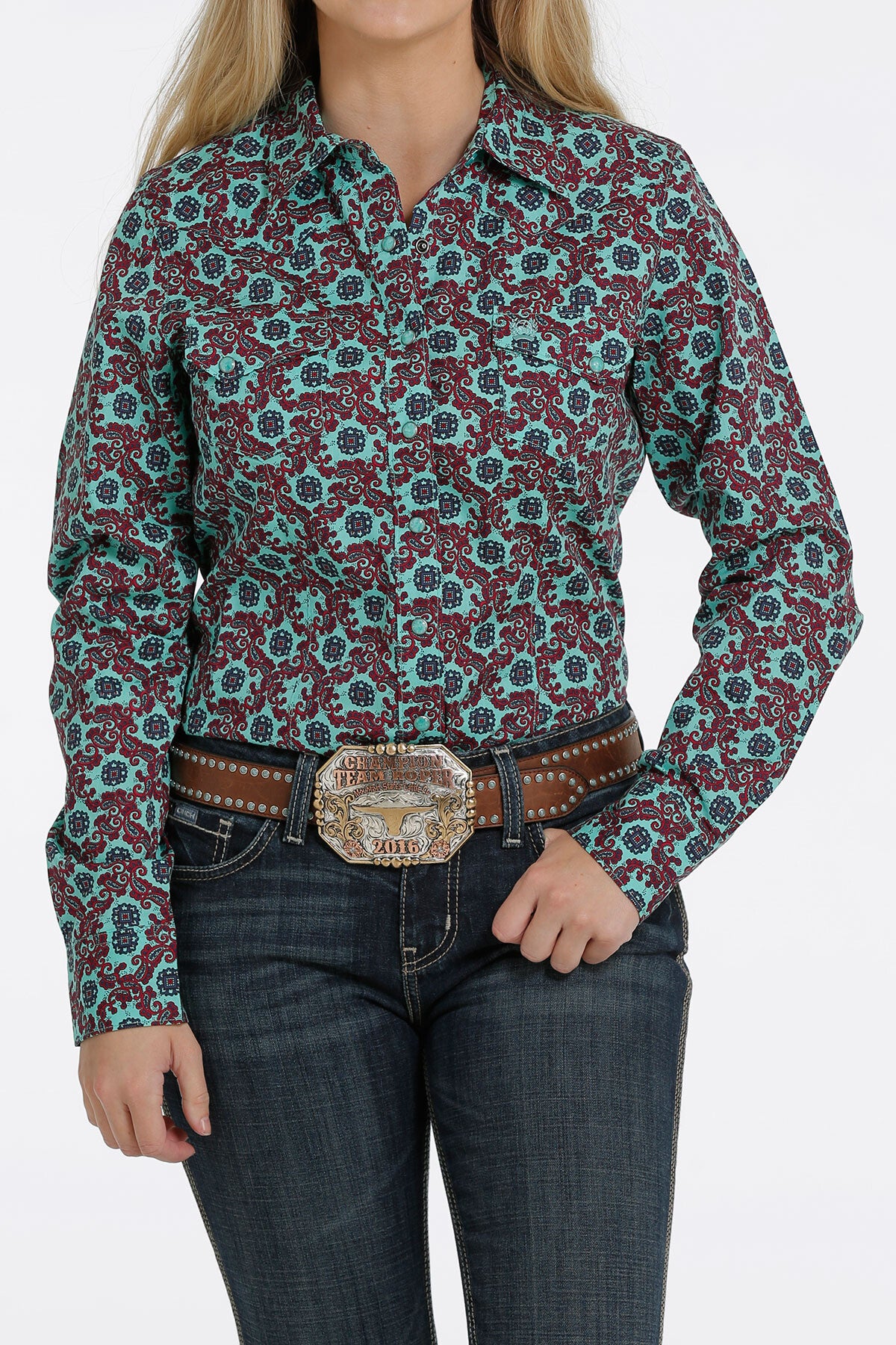 cinch hemd met print turquoise (1108)