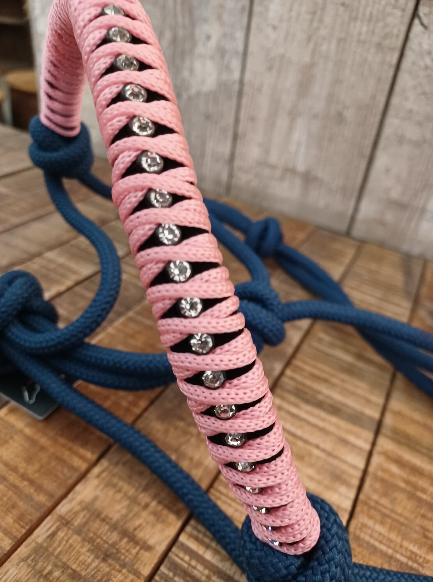 Het touwhalster Strass heeft een dubbele nekband. De neusriem onderscheidt zich visueel van het halster, heeft een andere kleur en is versierd met strass-steentjes. Door de mogelijkheid om het touwhalster traploos te verstellen kan het halster aangepast worden aan ieder paardenhoofd.